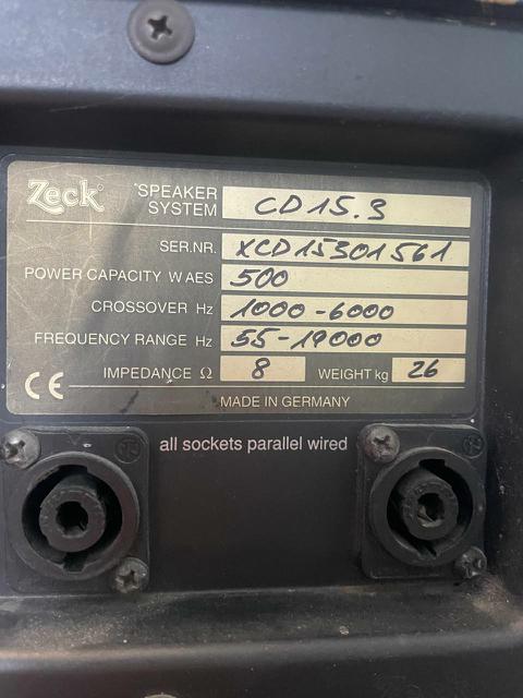 До Вашої уваги Трьох полосні пасивні колонки німецької фірми Zeck cd 15.3 Колонки технічно в ідеальному стані. Візуально також дуже добре, не значні царапинки. В середину ніхто не лазив і не чаклував. Все в оригіналі. Колонки на топових компонентах і все просто в ідеалі. Пятнашки на неодимах від фірми B&C LB 1504ND які робились на замовлення для фірми Zeck. Середньо частотні 6,5 дюйма від Zeck cm-850. Високочастотний стоїть твітер Zeck PDH-7. Ці колонки звучать на правду казково і потужно. Ціна за пару 650 зелених+розумний торг на дорогу або ж обмін на музичне обладнання якщо звісно мені підійде. З пропозиціями та з питаннями звертайтесь по тел-0672633041 Іван. Для бажаючих є більше фото та відео роботи.